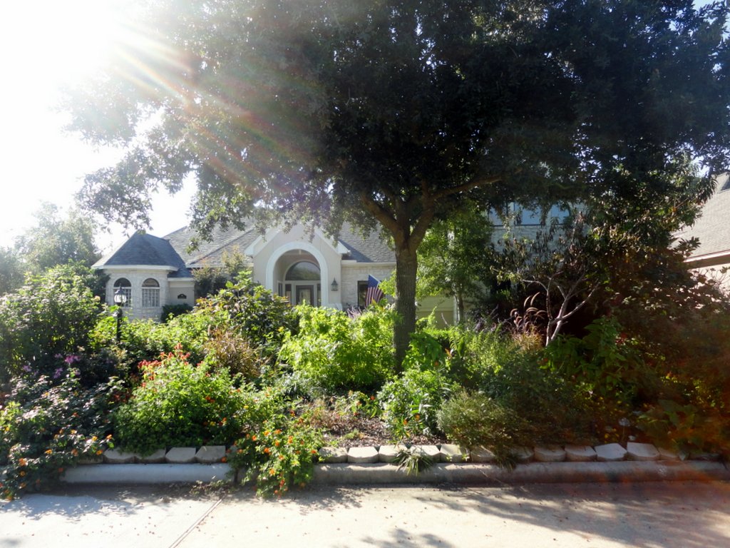 On the left is another house, White, down the street from us. They do not have any grass in the front yard, only these plants. Most are flowering plants and many are wild flowers.