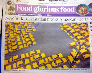 Again, a not so Yellow Car. But it is a car. And for those of you who like reflections, 'eat your heart out.' The next picture you may have seen. This one was in a London newspaper lamenting the flooding of all these Yellow Cars in Hurricane Sandy flooded New York.
