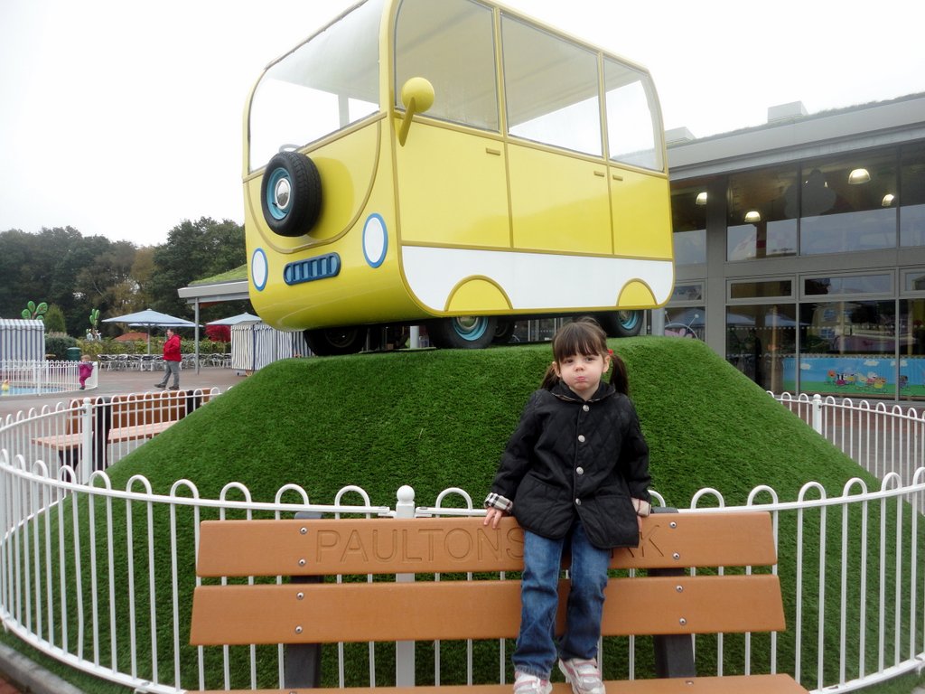 Now we see the railroad Yellow car, again transporting KP and Mrs. Jim. Then there is the Peppa Pig Yellow Bus showing off at Peppa Pigland.